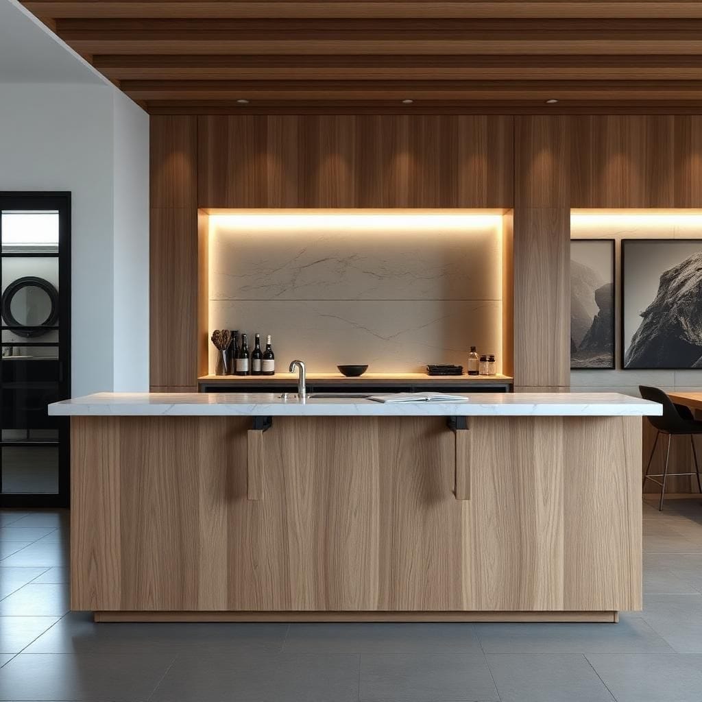 Gỗ tự nhiên kết hợp marble: dành cho quầy bar cao cấp, lounge, khách sạn, nhà hàng sang trọng – nhấn mạnh giá trị thương hiệu và trải nghiệm khách hàng.