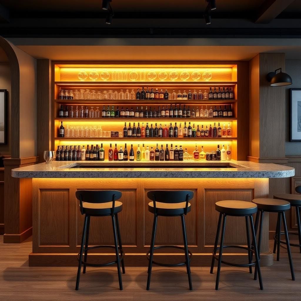 7.2. Quầy Bar Kết Hợp Ánh Sáng LED Thông Minh – Nâng Tầm Không Gian 2026