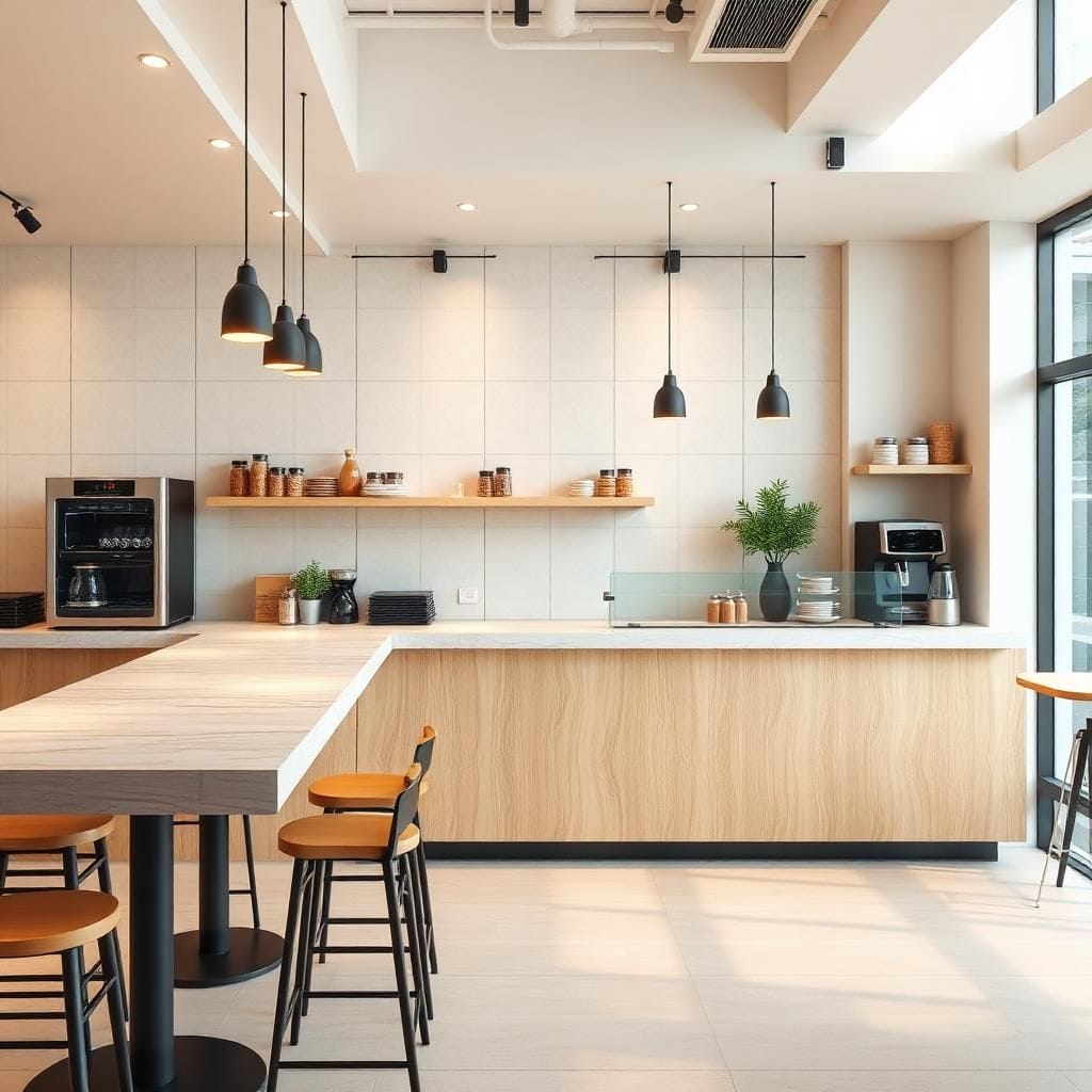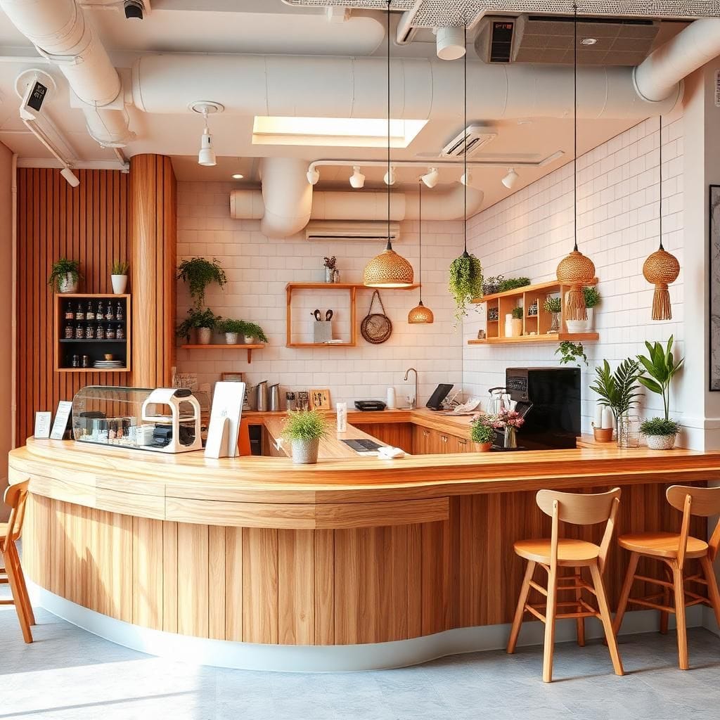 Bố trí công năng khoa học: pha chế – rửa – trưng bày – thanh toán.