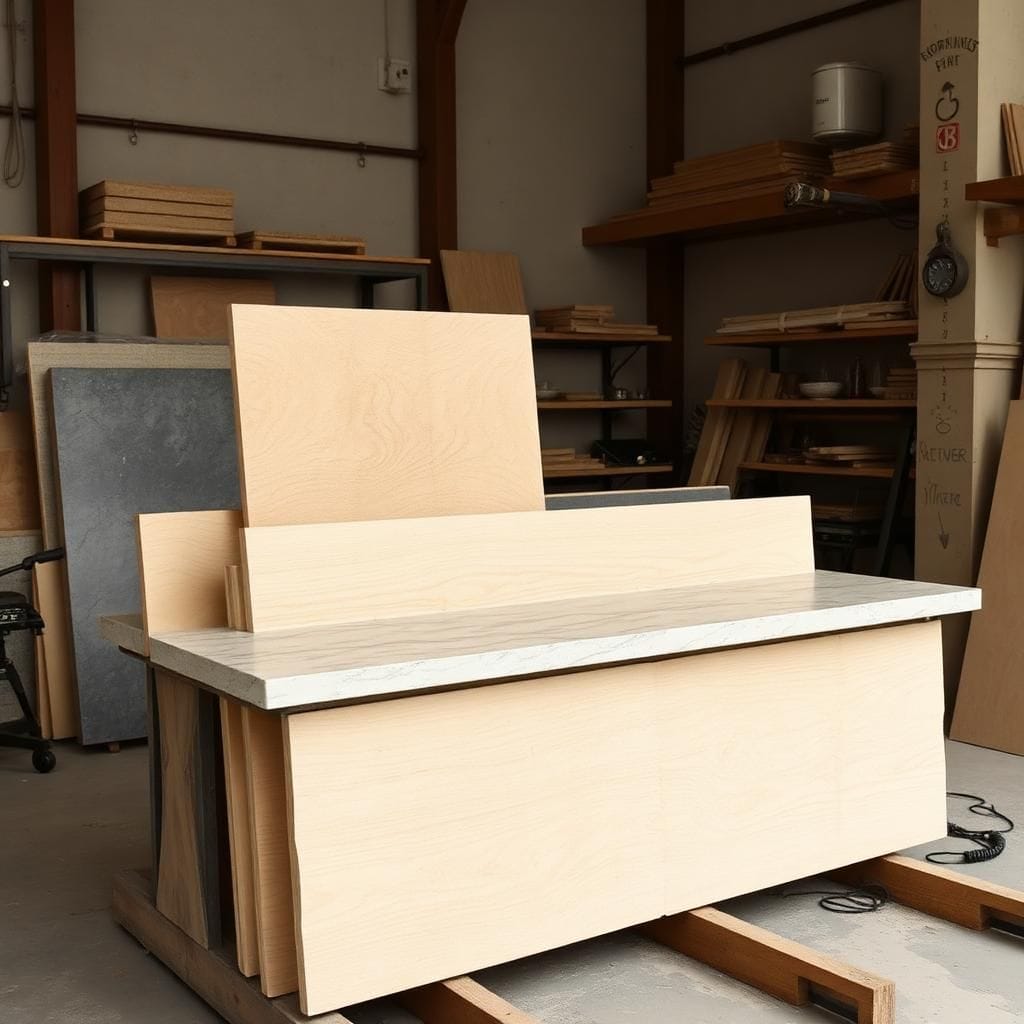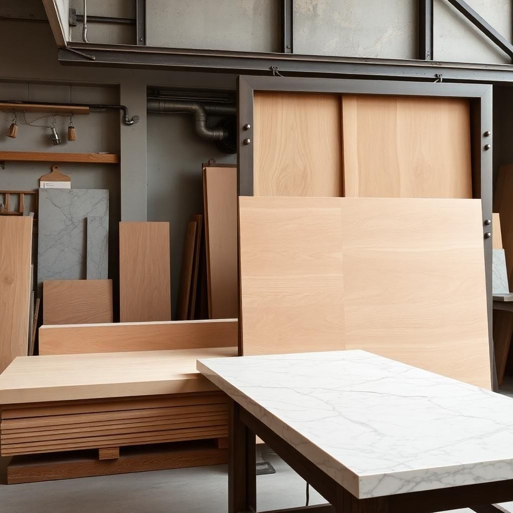 Giá vật liệu (gỗ, đá, inox, kính).