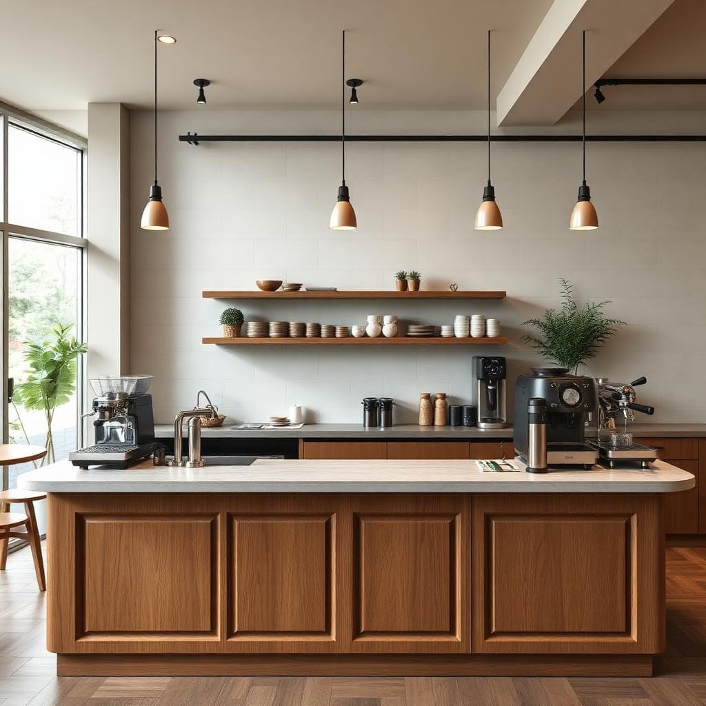 Đồng bộ thẩm mỹ: Quầy hài hòa với toàn bộ không gian quán.