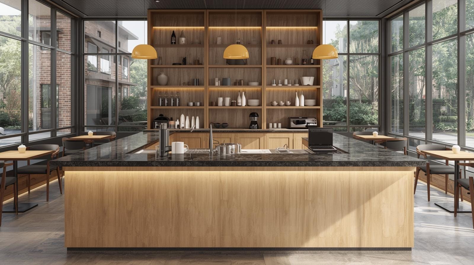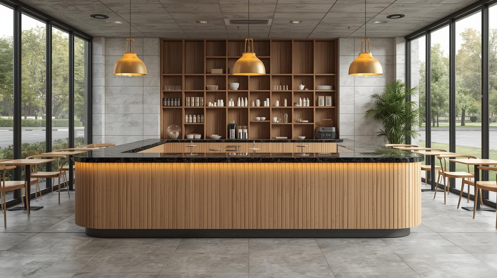 👉 Nguyên tắc quan trọng: quầy cafe phải “vừa đủ” với diện tích, tránh quá nhỏ gây bất tiện hoặc quá lớn gây lãng phí và chật chội.