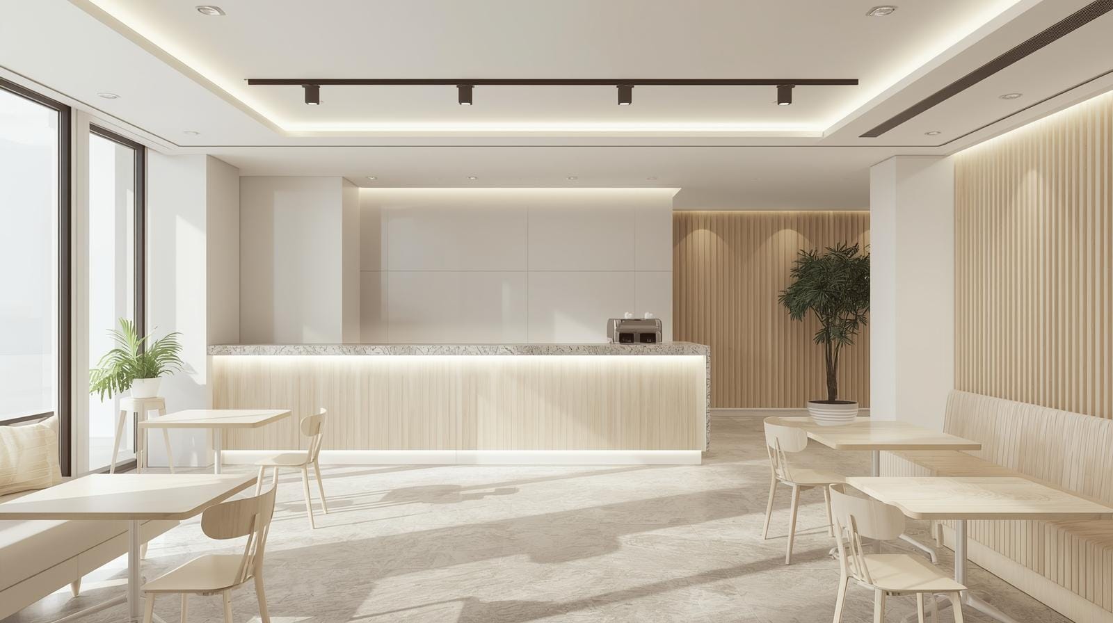 👉 Nguyên tắc 2026: quầy cafe phải “vừa đủ” với diện tích – quá nhỏ gây bất tiện, quá lớn gây lãng phí và chật chội.