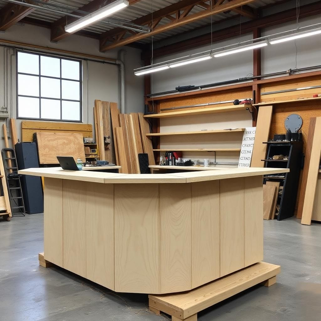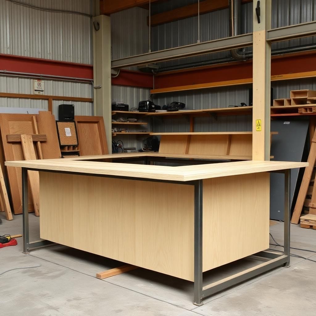 Gia công quầy tại xưởng, kiểm soát chặt chẽ từng chi tiết kết cấu.