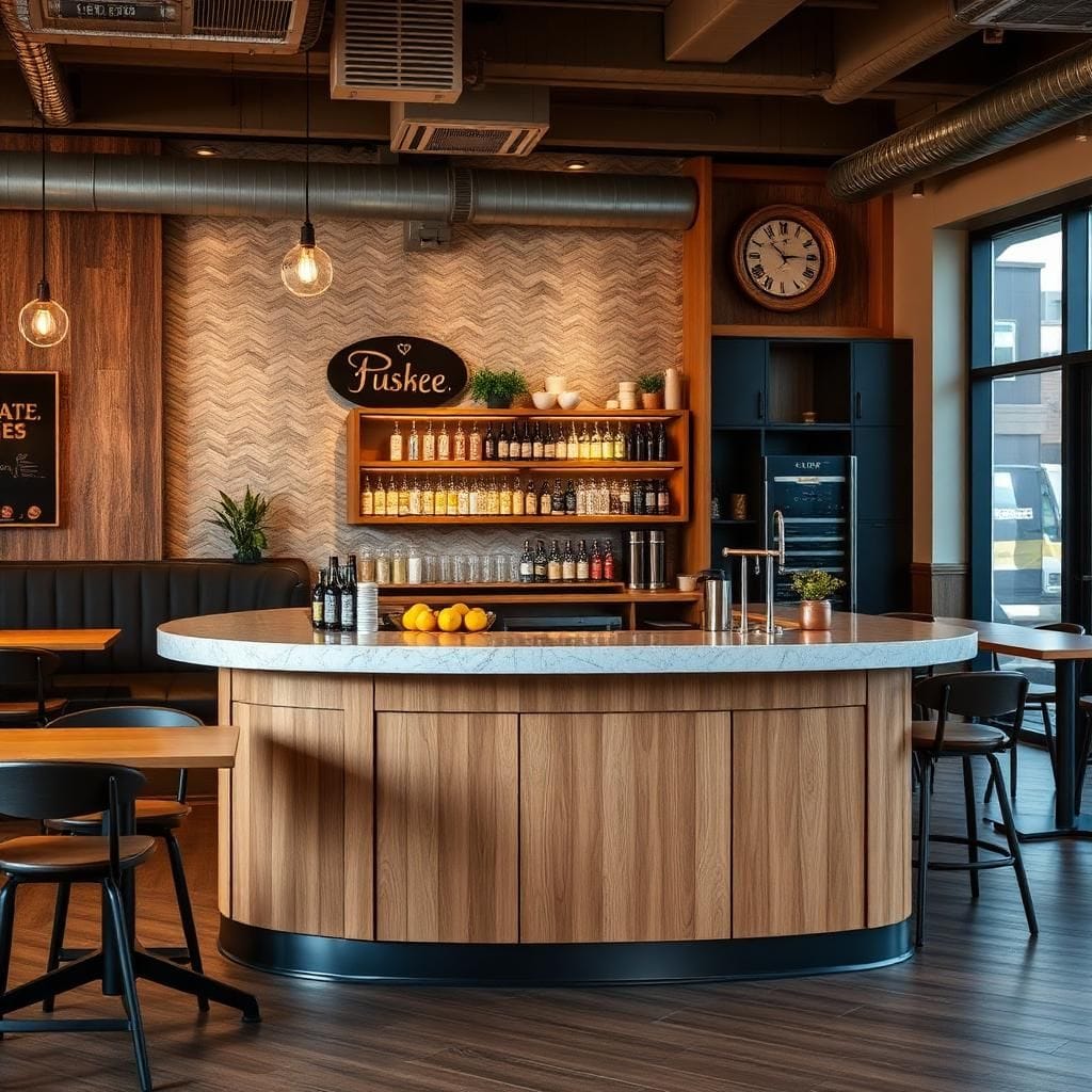 Quán lớn, bar, chuỗi thương hiệu → Quầy chữ U hoặc quầy luxury cao cấp, chi phí từ 50 – 150 triệu