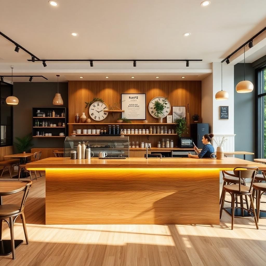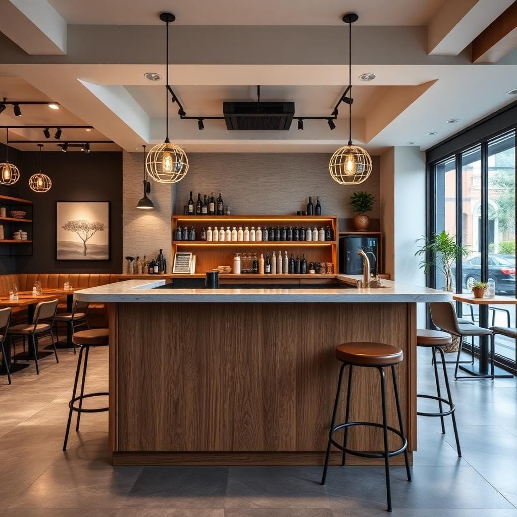 👉 Đầu tư hệ thống ánh sáng hợp lý sẽ giúp quầy pha chế trở nên nổi bật, chuyên nghiệp hơn và góp phần thu hút, giữ chân khách hàng lâu dài.