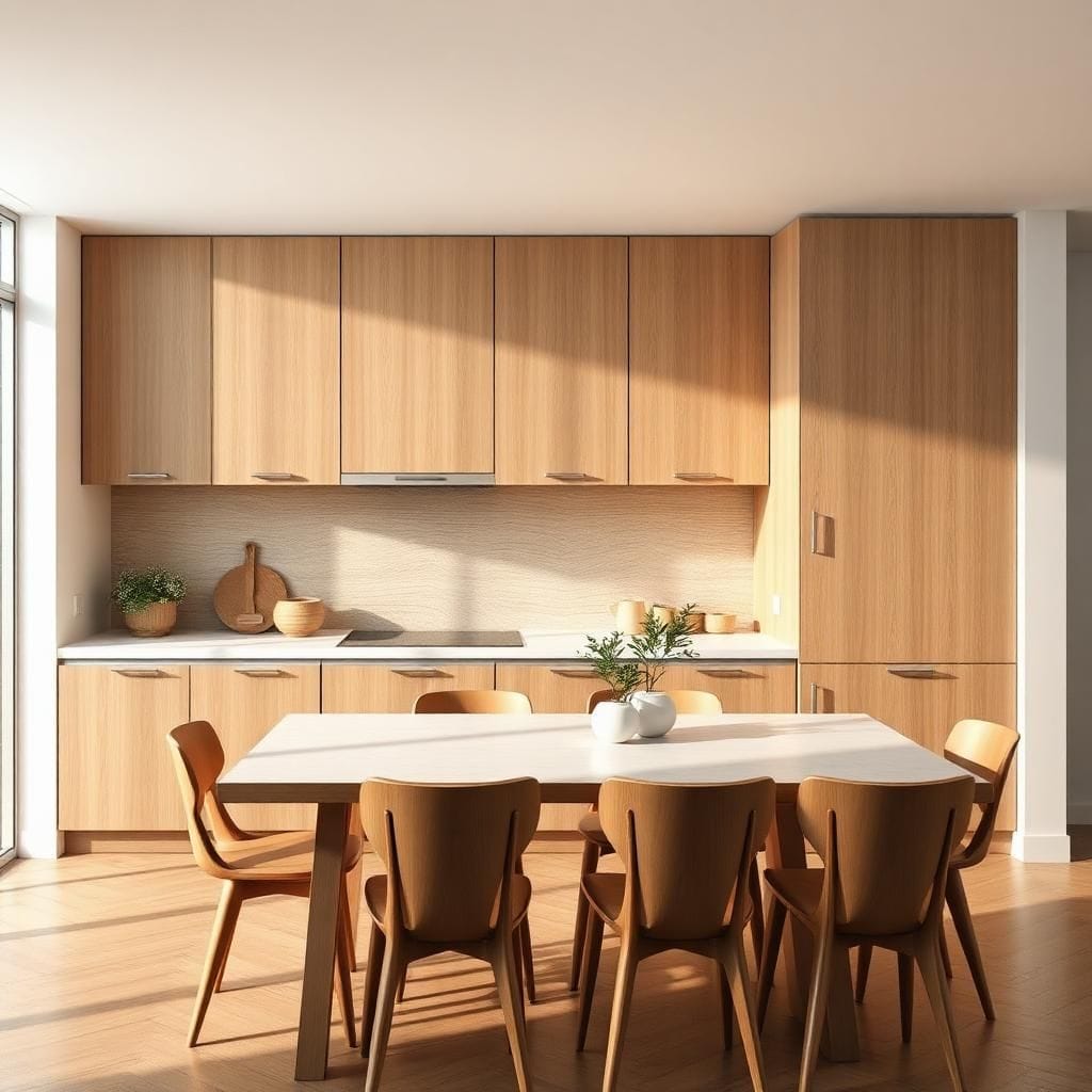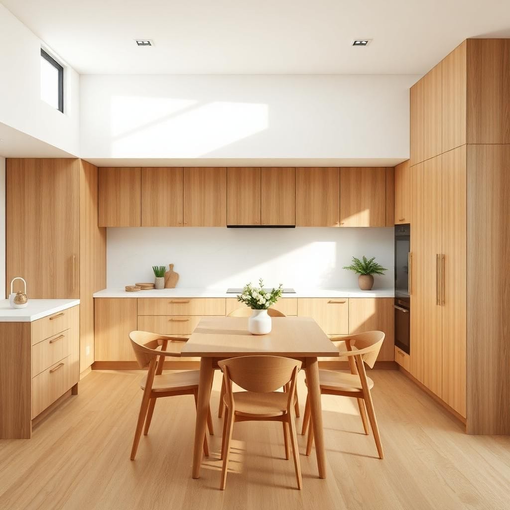 Phong cách Japandi: hòa trộn nét thanh thoát của Nhật Bản và sự ấm áp Bắc Âu. Nội thất gỗ sáng, màu trắng, be kết hợp ánh sáng tự nhiên, mang đến không gian thư thái.