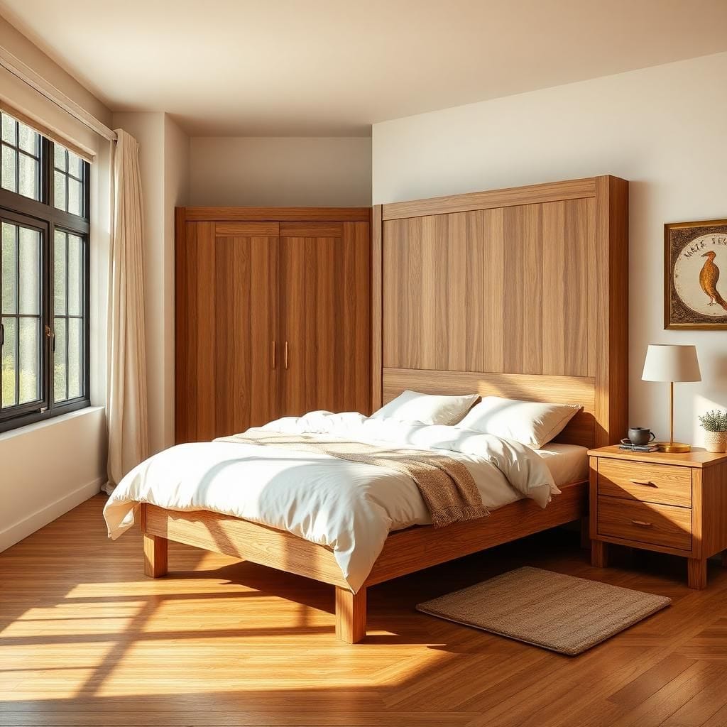Phòng ngủ: giường gỗ cần đặt ở vị trí yên tĩnh, tránh đặt dưới xà ngang hoặc đối diện gương.